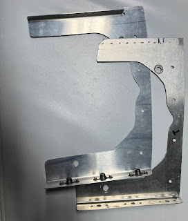 At about 150 hours of flight time, 125 Tach. After returning from formation flying found a couple of cracked pieces of baffle off the #1 and #4 cylinders. The metal is .032" 2024. I removed the broken pieces and will see if there's much effect on CHT's. These parts were cut per plans. -Update....I think the broken baffles should have been on the outside, not pinched by the screw. I made new baffles but this time made a lip so the edge clears the screw where the crack occurred and stiffens the part. A bead of RTV was applied to reduce fretting.